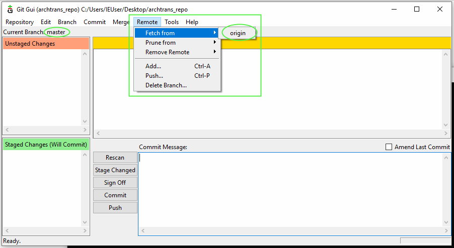 O en su defecto, usar git con entorno gráfico (GIT GUI).