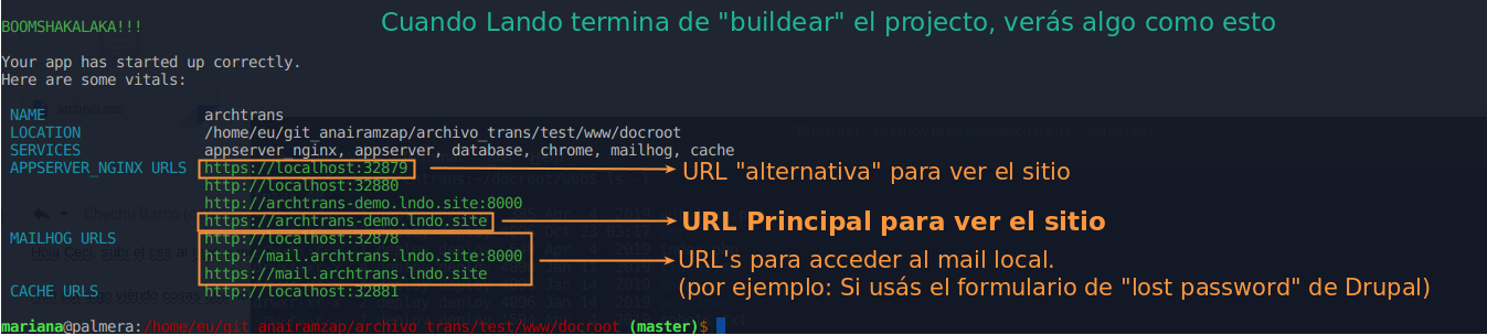 Otra opción es utilizar las otras URLs disponibles que genera Lando cuando Inicia y que se pueden volver a ver con lando info